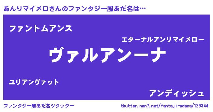 | 男性向けラノベタイトル風あだ名 | 『魔弾の王とあんりマイメロ』 |