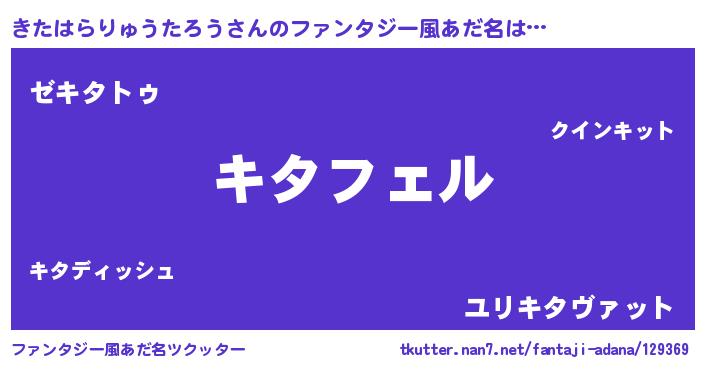 | 男性向けラノベタイトル風あだ名 | 『キタハラリュウタロウアートオンライン』 |