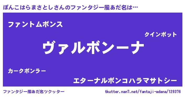 | 男性向けラノベタイトル風あだ名 | 『この素晴らしい世界にぼんこはらまさとしを!』 |
