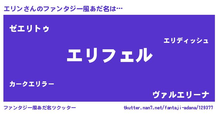 | 男性向けラノベタイトル風あだ名 | 『エリンの憂鬱』『魔法科高校のエリン』 |