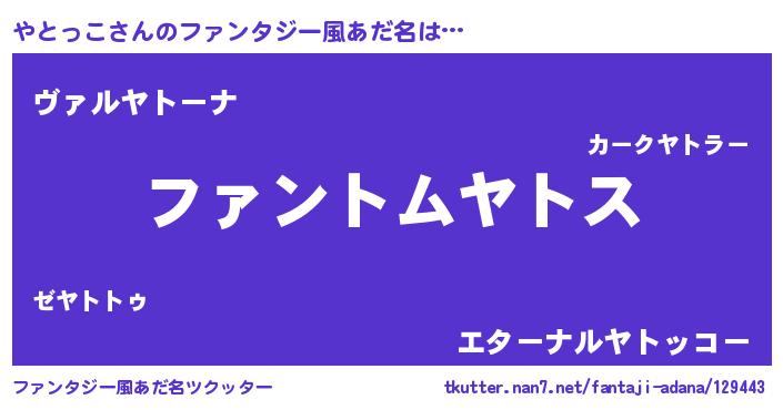 | ヒーロー風カッコイイあだ名 | 『暗黒騎士ヤト』『仮面ヤトダー』 |