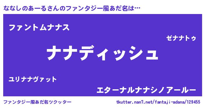 | ヘコむあだ名 | 『ななしのあーる(笑)』『ななぷりん』 |