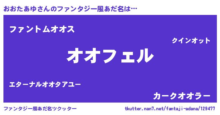 | 男性向けラノベタイトル風あだ名 | 『オオタアユアートオンライン』 |
