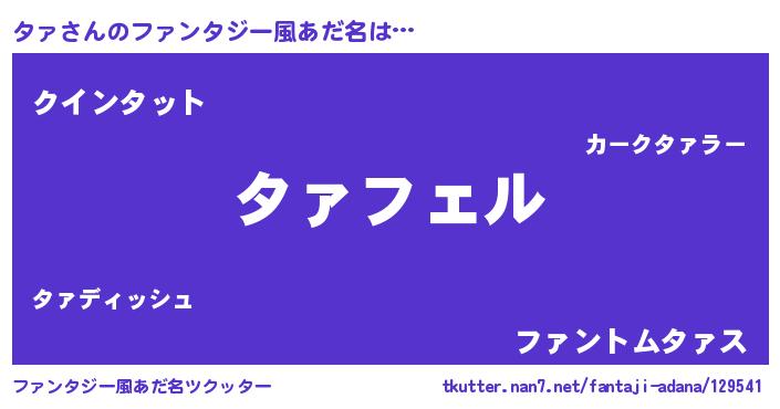 | 男性向けラノベタイトル風あだ名 | 『タァアートオンライン』『緋弾のタァ』 |