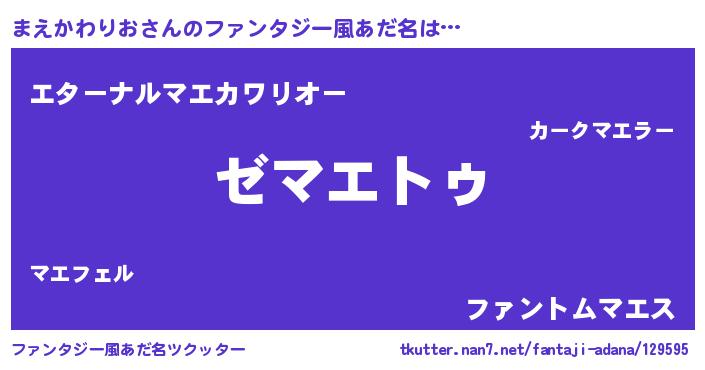 | 意味不明あだ名 | 『自称まえかわりお』 |