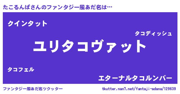 | 女子向けラノベタイトル風あだ名 | 『たこるんばの玉の輿計画!』 |