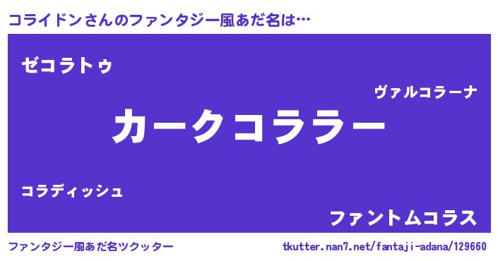 | 意味不明あだ名 | 『自称コライドン』『永久保存コライドン』 |