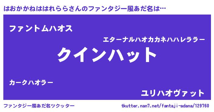 | ヒーロー風カッコイイあだ名 | 『天空の使者はおかかねははれらら』 |