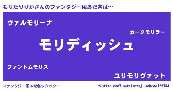 | ヘコむあだ名 | 『もりたりりか(爆)』『もりお』 |