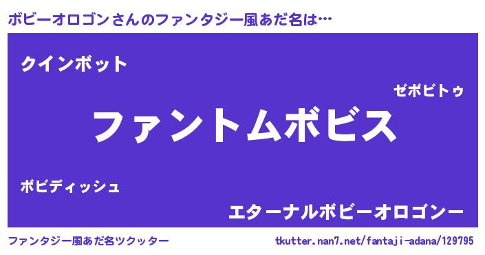 | 男性向けラノベタイトル風あだ名 | 『ボビーオロゴンの嫁は女の子じゃないと思った?』 |