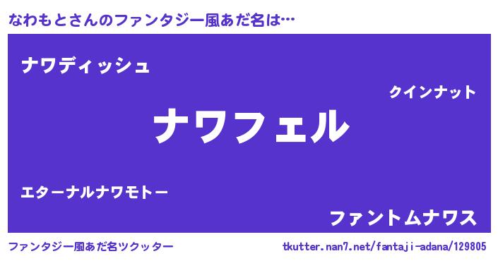 | ポケモン風あだ名 | 『ナワチュウ』『ゼニナワ』 |