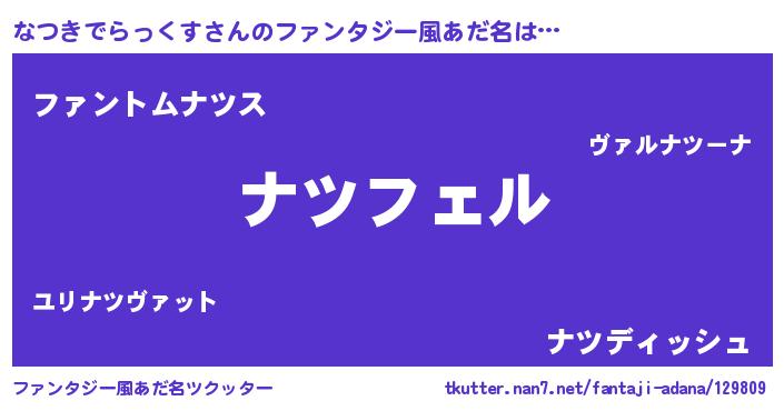 | 男性向けラノベタイトル風あだ名 | 『なつきでらっくすに滅ぼされるだけの簡単なお仕事です』 |