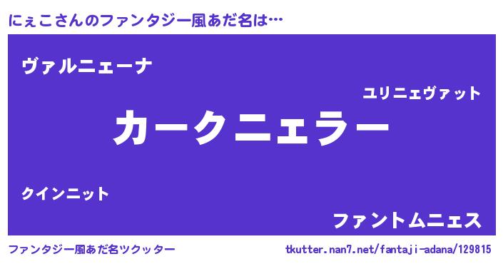 | 男性向けラノベタイトル風あだ名 | 『緋弾のニェコ』『魔弾の王とにぇこ』 |