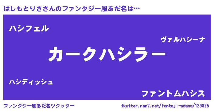 | ヒーロー風カッコイイあだ名 | 『スーパーハシモトリサ』『炎刃騎士ハシ』 |