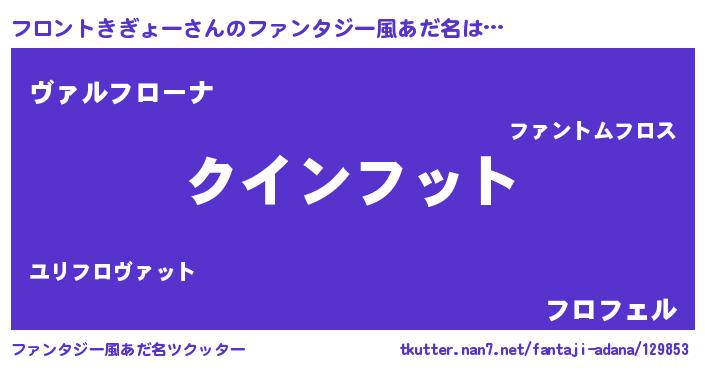| 自動車の名前っぽいあだ名 | 『フンR』『フウディ』『フロティマ』 |