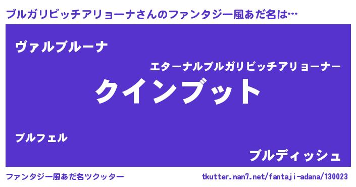 | 欧米人風あだ名 | 『アンジェラ・ブルガリビッチアリョーナ』 |