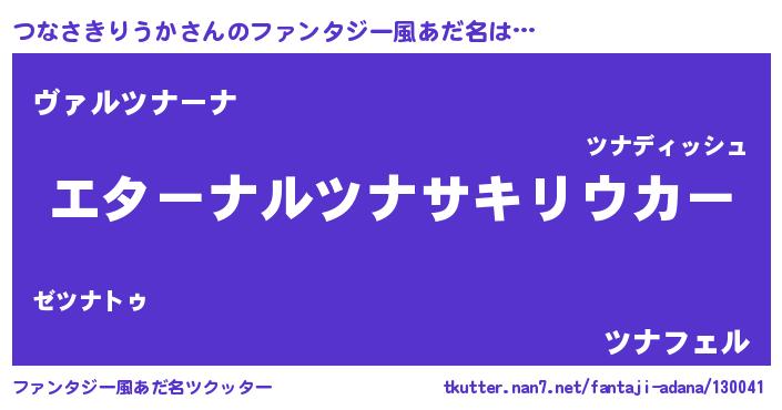 | 意味不明あだ名 | 『つなさきりうかフォーエバー』 |