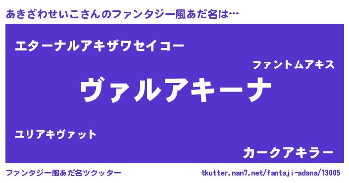 | 男性向けラノベタイトル風あだ名 | 『魔弾の王とあきざわせいこ』 |