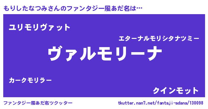 | 男性向けラノベタイトル風あだ名 | 『魔弾の王ともりしたなつみ』 |