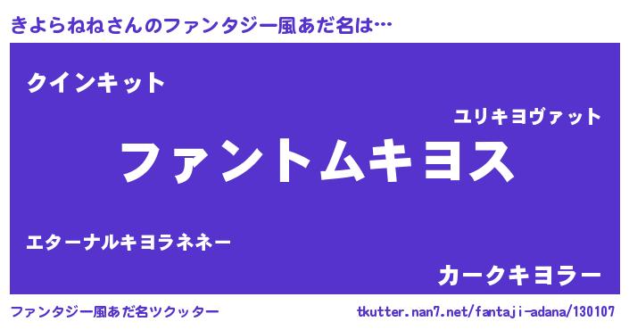 | 意味不明あだ名 | 『とにかく怪しいきよらねね』 |
