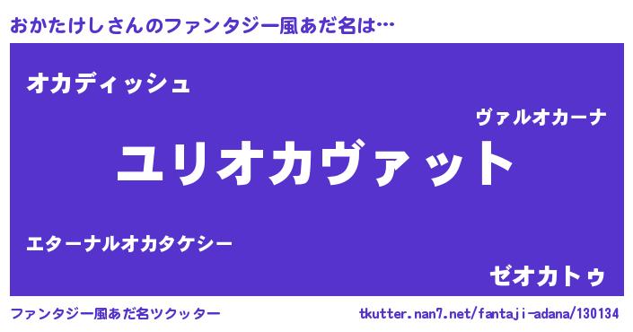 | 女子向けラノベタイトル風あだ名 | 『おかたけしの玉の輿計画!』 |
