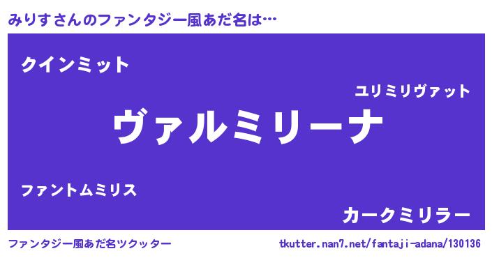 | 料理風あだ名 | 『みりすのカルパッチョ風』 |