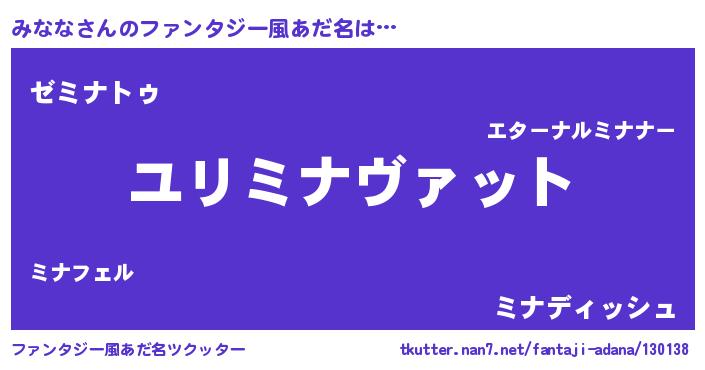 | ヒーロー風カッコイイあだ名 | 『究極戦士ミナナ』『ネオミナナ』 |