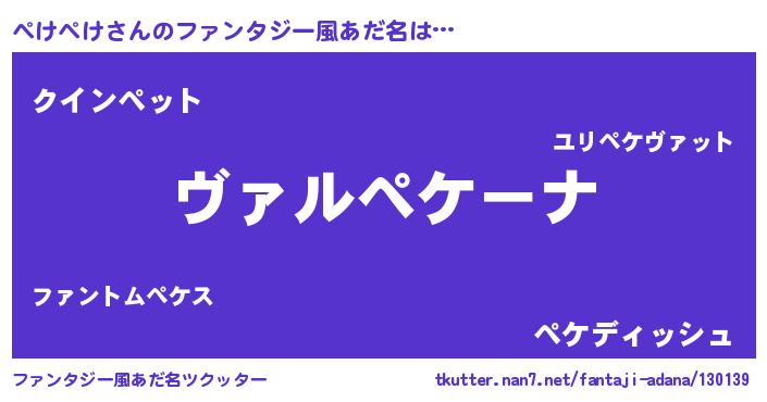 | 料理風あだ名 | 『ぺけぺけのカルパッチョ風』 |