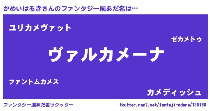 | 男性向けラノベタイトル風あだ名 | 『この素晴らしい世界にかめいはるきを!』 |