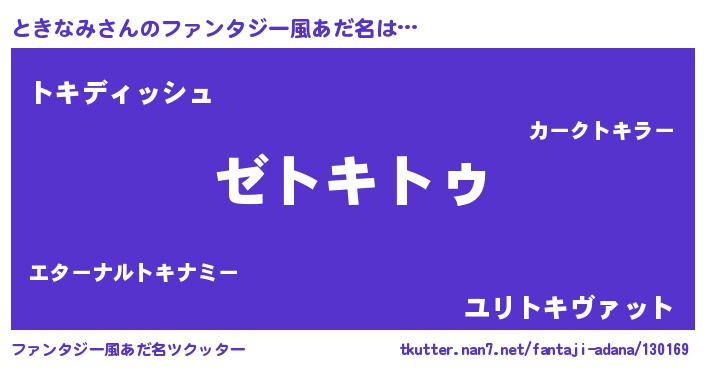 | 意味不明あだ名 | 『自称ときなみ』『永久保存ときなみ』 |