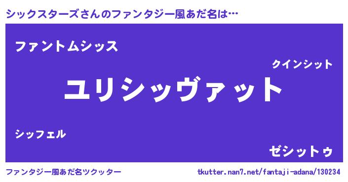 | 男性向けラノベタイトル風あだ名 | 『シックスターズ~年齢イコール彼女いない歴の魔法使い~』 |
