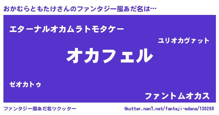 | 男性向けラノベタイトル風あだ名 | 『おかむらともたけの憂鬱』 |