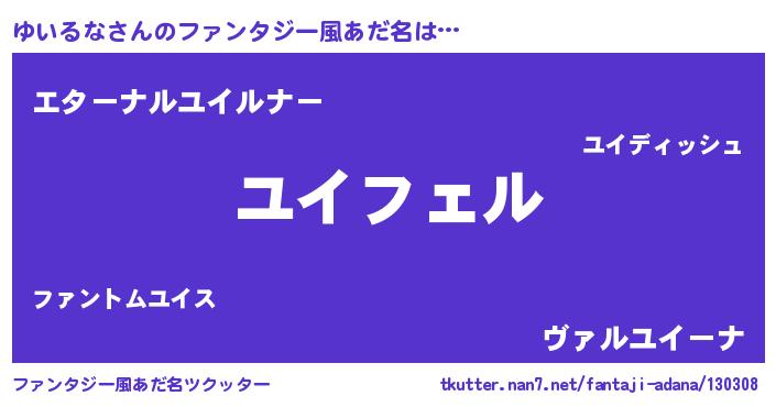 | 自動車の名前っぽいあだ名 | 『ユイティマ』『ユスラー』『デミユ』 |