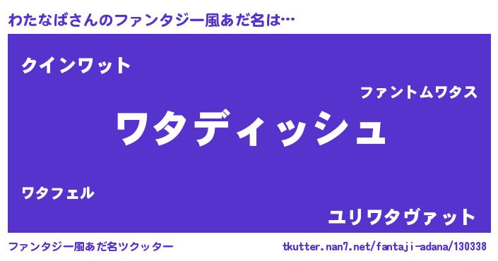 | ヘコむあだ名 | 『わたなば(笑)』『わたっちょ』 |