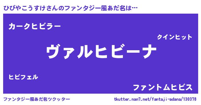 | 男性向けラノベタイトル風あだ名 | 『魔弾の王とひびやこうすけ』 |