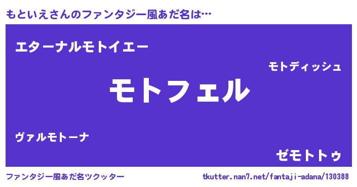 | ヒーロー風カッコイイあだ名 | 『スーパーモトイエ』『究極戦士モトイエ』 |