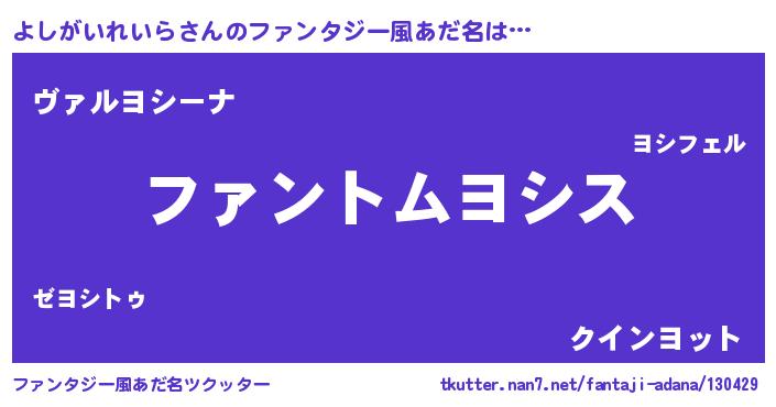 | 男性向けラノベタイトル風あだ名 | 『よしがいれいらの嫁は女の子じゃないと思った?』 |