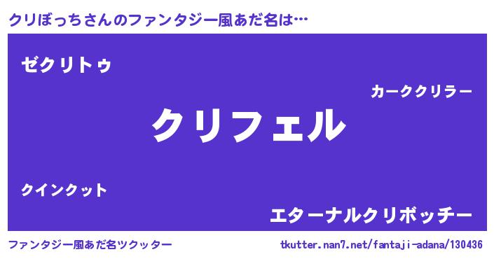 | 男性向けラノベタイトル風あだ名 | 『クリぼっちの憂鬱』『緋弾のクリボッチ』 |