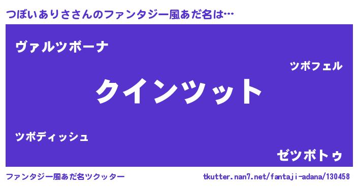 | 欧米人風あだ名 | 『アンジェラ・つぼいありさ』 |