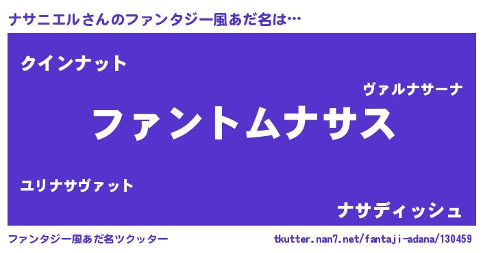 | ヒーロー風カッコイイあだ名 | 『炎刃騎士ナサ』『愛の使者ナサニエル』 |