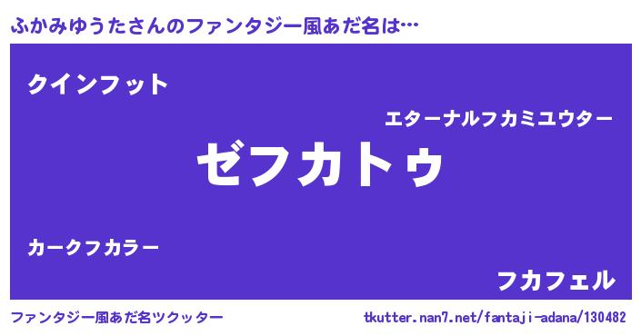 | 男性向けラノベタイトル風あだ名 | 『ふかみゆうたに滅ぼされるだけの簡単なお仕事です』 |