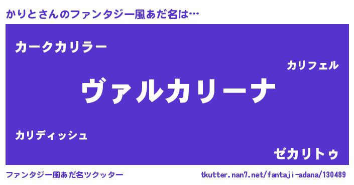 | 男性向けラノベタイトル風あだ名 | 『この素晴らしい世界にかりとを!』 |