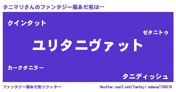 | 男性向けラノベタイトル風あだ名 | 『タニマリスレイヤー』 |