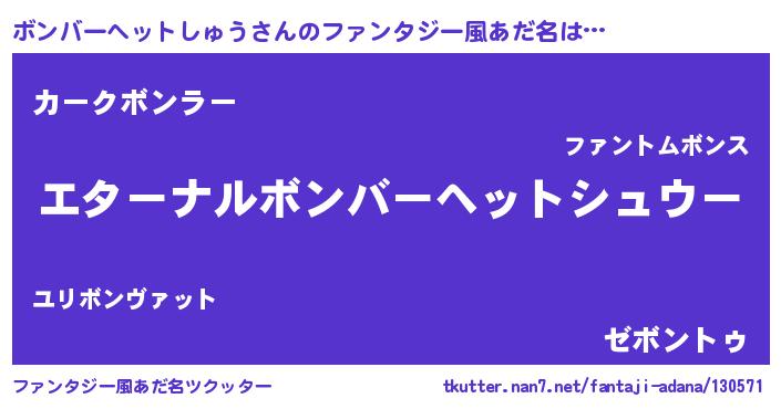 | 意味不明あだ名 | 『ボンバーヘットしゅうフォーエバー』 |