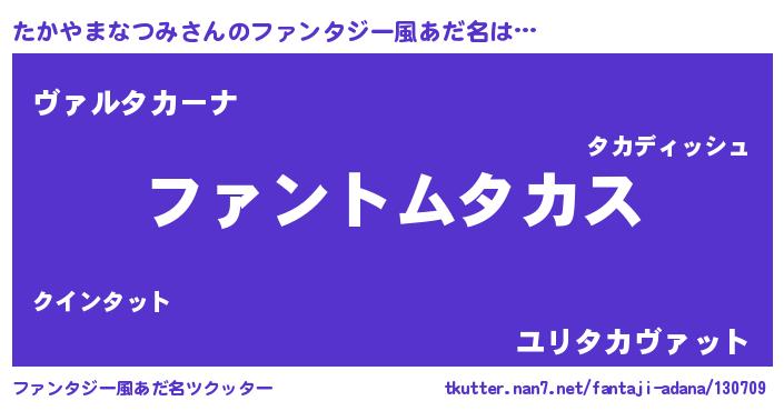 | ヘコむあだ名 | 『たかっぺ』『たかやまなつみ(苦笑)』 |