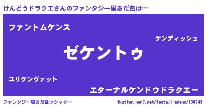 | 意味不明あだ名 | 『自称けんどうドラクエ』 |