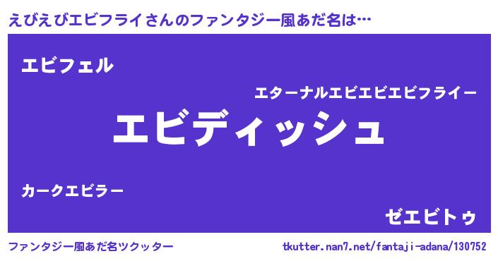 | 男性向けラノベタイトル風あだ名 | 『えびえびエビフライという概念が存在しない退屈な世界 』 |