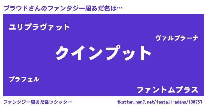 | ヒーロー風カッコイイあだ名 | 『正義の使者プラウド』『炎刃騎士プラ』 |