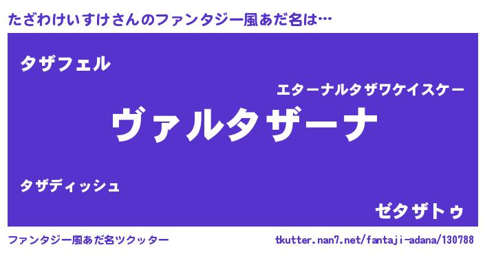 | 男性向けラノベタイトル風あだ名 | 『この素晴らしい世界にたざわけいすけを!』 |
