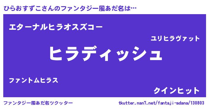 | 胡散臭い通販商品みたいなあだ名 | 『来世でも幸せになれる健康食品…その名も「ひらおすずこ」』 |